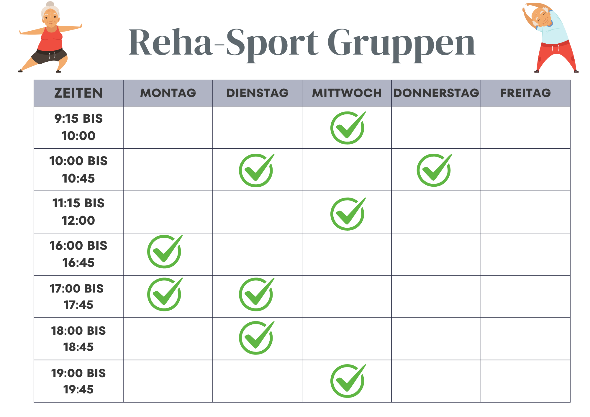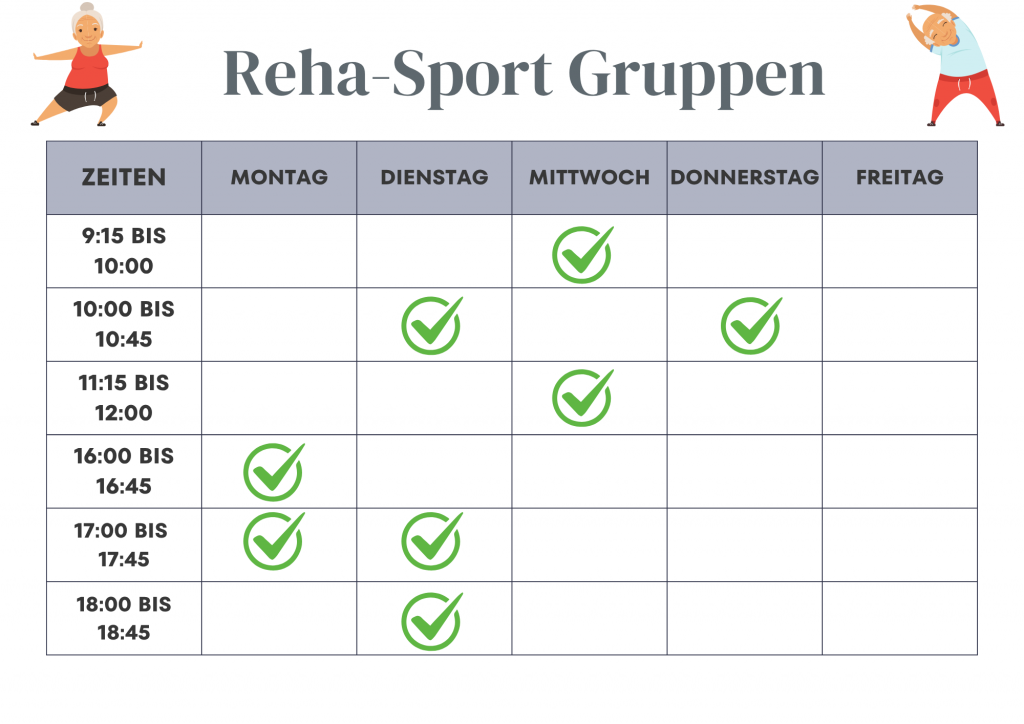 • Mit der Genehmigung kann man an unseren zertifizierten Reha-Sport-Kursen regelmäßig teilnehmen.